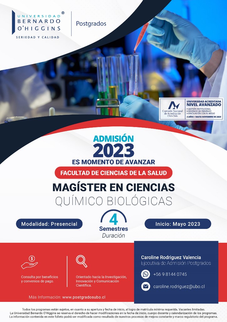 - Magíster en Ciencias Químico Biológicas